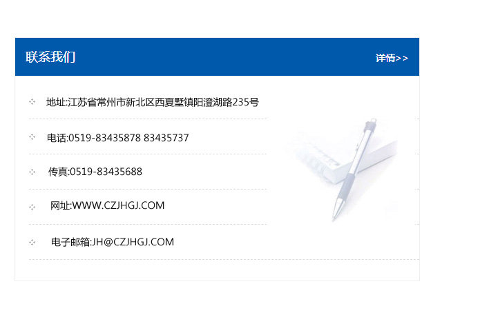 地址:常州市新北區友邦商務大廈1幢16、17層  電話:0519-85101652  傳真:0519-85112595  郵編:213022  網址:www_cz-jiayue_cn.258steel.com  郵箱:xiajifengaa@163.com